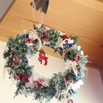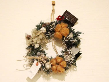ふわふわの綿毛が特徴的なかわいらしいリースです。